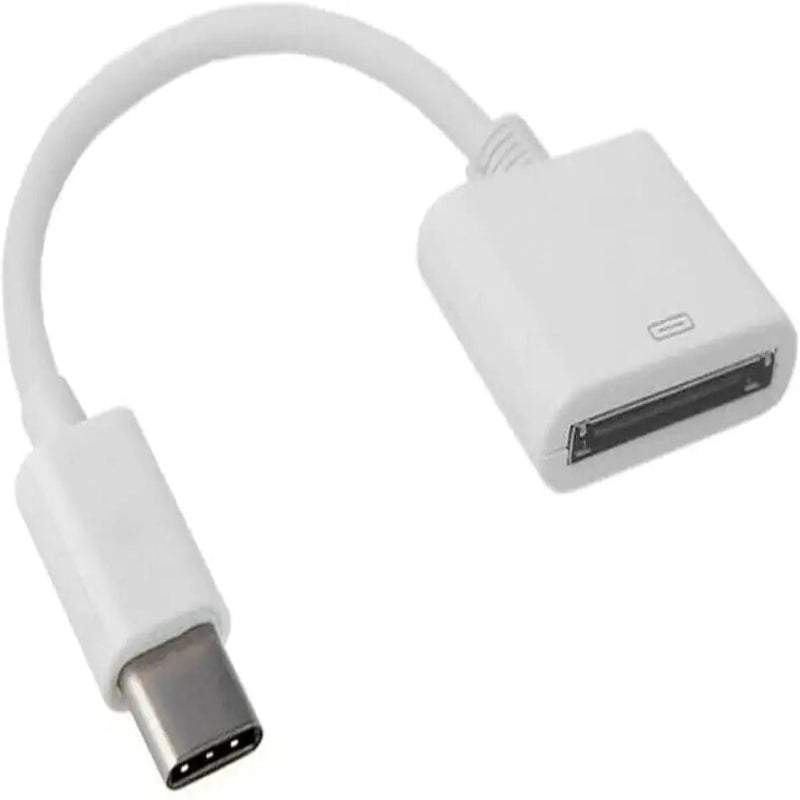 White USB-C OTG adapter cable for connecting devices and transferring data seamlessly.