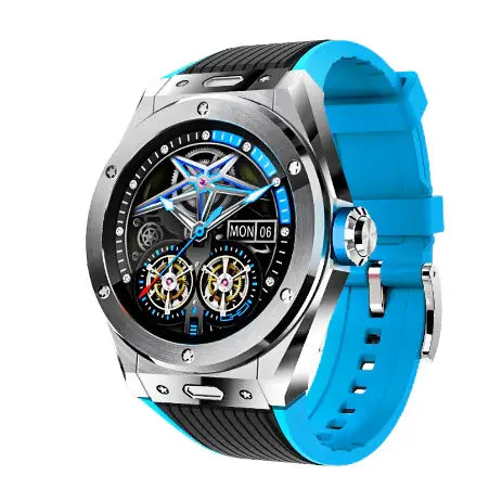 UrbanPulse smartwatch for men with stylish black and blue design, featuring advanced features for a modern lifestyle.